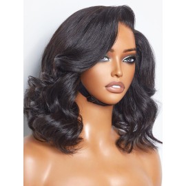 LUVME HAIR Loose Wave Bob Real 100% Human Hair Short Wigs Glueless Pre Cut Plucked Hd Lace Wig Ready To Go Natural Color Bleached Knots Side Part Black Wigs 14 Inches