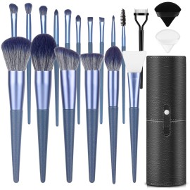 Makeup Brush Set, 17PCs Makeup Brushes with Foundation Eyebrow Blending Concealer Blush Eyeshadow Contour Lash Powder Brush, Make Up Brushes Kit with Organizer Travel Case (Medium, Blue)