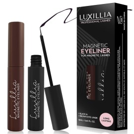 Luxillia Magnetic Eyeliner for Magnetic Eyelashes, Upgraded Strongest Hold, Most Natural Look, Waterproof, Smudge Proof Liquid Liner (Brown + Black)