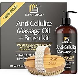 Anti Cellulite Massage Oil and Silicone Body Brush - Collagen and Stem Cell Skin Tightening Formula for Smoothing and Firming, 8 fl oz by M3 Naturals