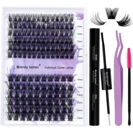 DIY Lash Extensions Kit 320pcs Individual Lashes Clusters 60D 80D D Curl Eyelash Extension Kit with Applicator and Lash Bond&Seal,Clusters Lash Glue Remover For False Eyelash Mix 10-16mm (60D+80D KIT)