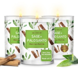 Magnificent 101 Set of 3 Long Lasting Palo Santo Smudge Candles - 42 Hour Burn, 3.5 Oz Each, Made with Soy Wax and Herb, Ideal for House Energy Cleansing, Meditation & Manifestation - Sage Candle