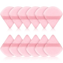 Maitys 12 Pcs Powder Puff Triangle for Face Makeup Cosmetic Loose Powder Puff Velour Soft Body Washable Reusable Foundation Sponge Wet Dry Makeup Tool for Women(Small,Pink)