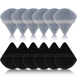 Maitys 12 Pcs Powder Puff Triangle for Face Makeup Cosmetic Loose Powder Puff Velour Soft Body Washable Reusable Foundation Sponge Wet Dry Makeup Tool for Women(Small,Black, Gray)
