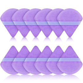 Maitys 12 Pcs Powder Puff Triangle for Face Makeup Cosmetic Loose Powder Puff Velour Soft Body Washable Reusable Foundation Sponge Wet Dry Makeup Tool for Women(Small,Purple)