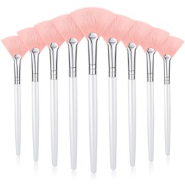 9 Pieces Facial Fan Mask Brushes, Soft Facial Applicator Brushes Tools for Peel Glycolic Makeup for Mud Cream(Pink, White)