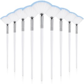 9 Pieces Facial Fan Mask Brushes, Soft Facial Applicator Brushes Tools for Peel Glycolic Makeup for Mud Cream(White Blue)