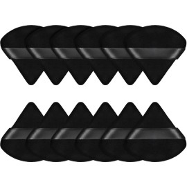 Maitys 12 Pcs Powder Puff Triangle for Face Makeup Cosmetic Loose Powder Puff Velour Soft Body Washable Reusable Foundation Sponge Wet Dry Makeup Tool for Women(Small,Black)