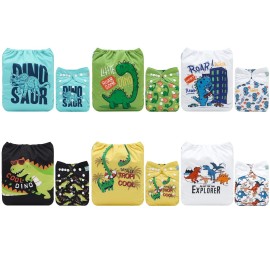 - SLIM FIT AND ANTI LEAK - Perfect fit with crossover snaps and hip snaps to avoid wing droop and keep the baby cloth diapers in place. Snug leg openings and waterproof TPU cover ensure both breathability and leak prevention. | GROWS WITH YOUR CHILD - One size adjustable cloth diaper covers (8-40lbs) with 3x4 rise snaps, perfect fit for newborn infants to toddlers. Saving your money and time looking for different sizes. | ULTIMATE ABSORBENCY - Including six adjustbale 4-layer natural blend polyester cloth diaper inserts. Blowout free days and leak free nights guaranteed! | ATHLETIC WICKING JERSEY INTERIOR - Simple for clean up, keeps baby dry and cool. Perfect for babies that are sensitive to warmth and wetness against their skin. | DURABLE AND COMFORTABLE - With tough stitching and elastic that endures, our baby cloth diapers are reliable for repeated washing and use. Large back opening for easy stuffing of inserts, more comfy on baby's back waist. The flap prevents inserts from peeking out or becoming soiled.