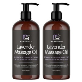 Lavender Massage Oil with Collagen and Stem Cells - Skin Firming Therapy Oil for Cellulite and Quick Absorption on Bum, Thighs, and Belly, 8 fl oz (Pack of 2) by M3 Naturals
