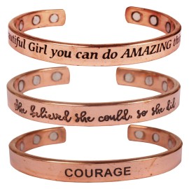 Handcrafted By Indian Skilled Artisans Durable Copper Base Courage Beautiful Girl Can Do Amazing Things She Believed She Could Do So She Did Inspirational Messages Magnetic Bracelets. Set Of 3. In Natural Tone. buy pulseras de cobre para mujer tommy percent justin payne gift bag box ankle cups arm vida hemios hematite yoga wrist..
