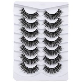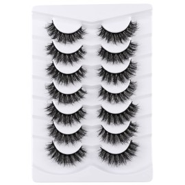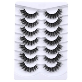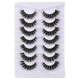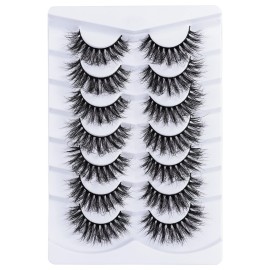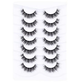 Mebver Lashes Eyelashes 8D Fluffy False Eyelashes Wispy Faux Mink Lashes Light Weight Fake Eyelashes Cat Eye Lashes 7 Pairs Pack
