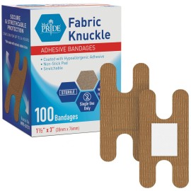 MED PRIDE 100 Sterile Fabric Fingertip, Finger, and Knuckle Bandages - Latex and Rubber Free Hypoallergenic, 1.5in X 3in