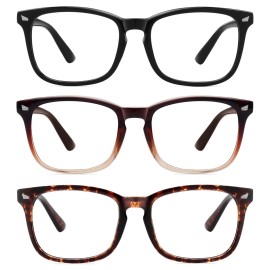 MEETSUN 3-Pack Blue Light Blocking Glasses, Anti Eye Strain Headache (Sleep Better), Computer Glasses UV400 Lens (Black + Brown Gradient + Tortoiseshell)