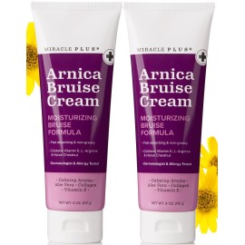Miracle Plus Arnica Cream Extra Strength Bruise Relief Lotion For Bruising And Swelling On Skin | Arnica Gel, Vitamin K Cream, Skin Care | Moisturizing Bruise Formula With Horse Chestnut, 2-Pack..