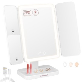 EASEHOLD Vanity Mirror with Lights, 2X 3X Magnification, Trifold, Rechargable, Touch Control - Gifts for Girls & Women