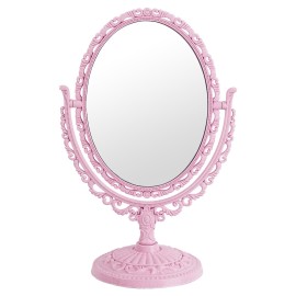 XPXKJ Pink Vintage Vanity Mirror Shabby Chic Decor | 360 Rotating Double-Sided Table Makeup Mirror with Stand Bedroom Decoration Perfect for Tabletop, Desk, Or Makeup Station