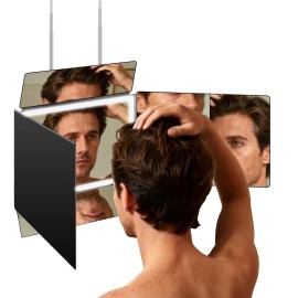 LMZNXCZ 5 Way Mirror for Self Hair Cutting,360 Haircuts Mirror Men for Barber Use Tools,to See Back of Head,Tri Fold with Portable Height Adjustable Telescoping Hooks