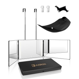 JUSRON 360 Viewing Angle Self Hair Cutting Mirror, Clear Anti-Fog HD Glass, USB Rechargeable, Easy to Use, Height Adjustable, Portable, Good Choice for Gifts..