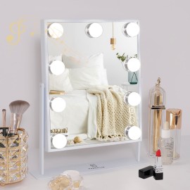 This is a 11 Large-Size and Tall Dimmable Makeup Mirror. This mirror with lights for makeup desk is 11 inch size. It provide a big and high definition clarity wide-angle viewing, helping you achieve a flawless professional makeup. You can actually see your whole face in this mirror on the magnifying side. 95% Daylight Similarity, Superb HD and Natu..