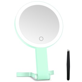 MIYADIVA Lighted Makeup Mirror, 30X Magnifying Mirror with Light, Hanging and Handheld Mirror with Handle, Green