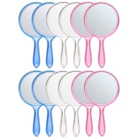 OMIRO Hand Mirror, Double-Sided Handheld Mirror 1X/3X Magnifying Mirror with Handle, Set of 12 (Mix Colors)