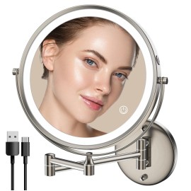 Rocollos Wall Mount Lighted Makeup MirrorRechargeable double sided lighted wall mount makeup mirror with 10x magnification and extendable armThe wall mirror with extension offers warm white, cool lights and bright white. Each lights suits for party heavy makeup, light makeup, daily commute makeup. Materials: Metal+Galss Size:13.7*12*2 Inch/ 35*30...