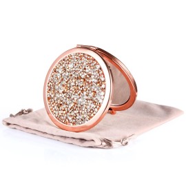Dynippy Compact Mirror Rose Gold Makeup Mirror Folding Mini Pocket Mirror Portable Hand Mirror Double-Sided 2 x 1x Magnification for Woman Girls (Bling Rose Gold)