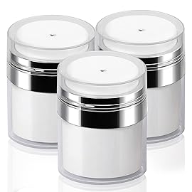 3Pack Airless Pump Jars Mixed(0.5Oz+1.0Oz+1.7Oz) Moisturizer Dispenser Air Pump Container, Vacuum Empty Bottle Essentials Jar
