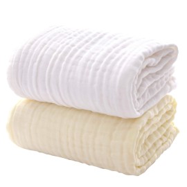 MUKIN Baby Bath Towels, Super Soft Cotton Receiving Blanket for Baby\'s Delicate Skin,2Pack Swaddle Blanket for Newborns Toddlers Boy Girl,Baby Registry as Shower (White+Yellow)