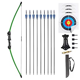 Product Features 1) Light weight for easy take of kids 2) Light draw weight for kids 3) Durable fibreglass material, most durable material, safe to kids 4) Bring kids much fun 5) Best gift for kids 6) Good start for archery 7) Rounded arrow tips Package Includes 1x bow 9 x safety arrows 4 x target faces paper4 x target nails1x arm guard 1x arrows q..