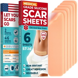 Medical Grade Silicone Scar Sheets - 6pk (5.7x1.6) - Visible Difference on Surgical & Keloid Marks - Reusable C-Section Scar Silicone Strips - Easy to Use Strips