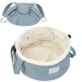 Narwey Barrel Drawstring Makeup Bag Large Floral Cosmetic Bag Make up Bags Toiletry Bag Travel Bags for Toiletries Organizer for Women Gift for Teen Girls (Greyish Blue) (Patent)