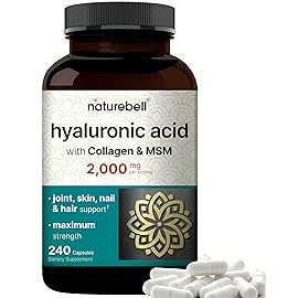 NatureBell Hyaluronic Acid Supplements 2,000 mg | 240 Capsules, with MSM & Hydrolyzed Bovine Collagen - 3 in 1 Support for Skin Hydration, Joint Lubrication, Hair, and Eye Health