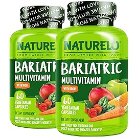 NATURELO Bariatric Multivitamin - One Daily with Iron - Supplement for Post Gastric Bypass Surgery Patients - Natural Whole Food Nutrition - 60 Veggie Capsules (Pack of 2)