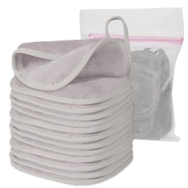 Natwag Makeup Remover Cloth, 6 x 6 Make Up Towels Reusable Face Cloth for Washing Face, 12 Pack Makeup Remover Pads Microfiber Face Washcloth with Mesh Bag, Light Grey