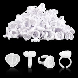 NXJ INFILILA Glue Rings for Eyelash Extensions 100PCS Disposable Rings For Lashes Lovely Heart Shape, Makeup Plastic Nail Art Glue Cups Lash Extension Supplies for Eyelash Extensions