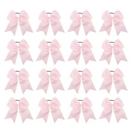 16PCS 8 Large Cheer Hair Bows Ponytail Holder Elastic Band Handmade for Cheerleading Teen Girls College Sports (Pink, 1 Count (Pack of 16))