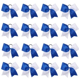16PCS 8 Large Cheer Hair Bows Ponytail Holder Elastic Band Handmade for Cheerleading Teen Girls College Sports (Royal blue/White, 1 Count (Pack of 16))
