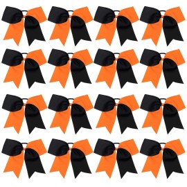 16PCS 8 Large Cheer Hair Bows Ponytail Holder Elastic Band Handmade for Cheerleading Teen Girls College Sports (Black/Orange, 1 Count (Pack of 16))
