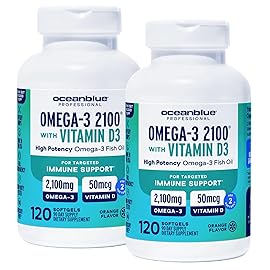 Oceanblue Professional Omega-3 2100 with Vitamin D3 - 120 ct - 2pack - Triple Strength Burpless Fish Oil Supplement with High-Potency EPA, DHA, DPA and Vitamin D3 - Wild-Caught - Orange Flavor