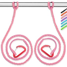 OCEANBROAD Kayak Paddle Leash with D-Ring Stretchable Bungee Strap Lanyard Rope for SUP Kayaking Boating Canoeing Fishing Pole Rod 4-7 Feet Pink 2 Pack