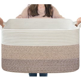 - Multifunctional Storage Basket:13"x9.85"x8.7"inch, large capacity, convenient to store more daily necessities.Our baskets are handmade with flexible material, which may result in slight size variations. It is a perfect storage basket for living room, bedroom, bathroom, baby room, utility room, playroom, classroom. Store household items (towels, toiletries, etc.),Office Supplies, fruit, snacks , books, baby diapers or toys. Use for dog toy storage organization to keep your living space tidy | High Quality Cotton Rope Woven: Woven cotton thread is very soft and don't damage your floors and furniture. Seamless design, not easy to tear,More firm than rattan and plastic materials. Our storage basket has no harsh chemiacls added, and the cotton rope basket is safe for kids, elders and pets. Firm enough and stylish enough to go anywhere in the home | Unique Design:Small rope basket with foldable design and separate built-In handles for easy portability and store. The handle is made of 3-heeled braided rope, comfortable to the touch, even with heavy items your hand is not restrained.In addition the storage basket available in different unique colors. Provide a nice fine Nordic touch to any room of your house | Washable:Hand washing or machine washing. When wash by machine, better place basket in a garment bag. Air-dry is better or you can dryer on a delicate cycle | NOTE: The home woven storage basket is folded when shipping, it will turn back to its elegant shape quickly when you fill in some towels or clothing , and also iron is a good idea