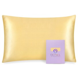 OLESILK 100% Mulberry Silk Toddler Pillowcase for Hair and Skin, Both Sides 19 Momme Pure Natural Silk Travel Pillow Cases with Hidden Zipper, 13x 18, Gold