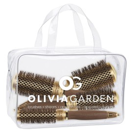 Olivia Garden NanoThermic Ceramic + Ion Round Thermal Hair Brush - Not Electrical - Professional Blowout Brush for Normal to Thick Hair -1 to 2 1/8 - Diameter Barrel - CIXL-24,34,44,54