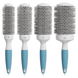 Round Brush Set for Blow Drying and Styling - Ceramic Ionic Thermal Brushes, Wet Hair Brush Bundle with Travel Bag for Women and Men