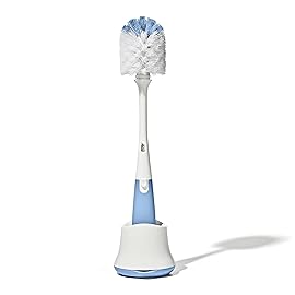 The OXO Tot Bottle Brush with Stand is the ideal tool for cleaning baby bottles. Combining soft bristles for gentle cleaning and firm bristles for serious scrubbing, this handy bottle cleaner brush has a flexible neck to easily reach inside contoured bottles. The bottle cleaner brush bristles are durable and won\'t cause scratches. Replacement brus..