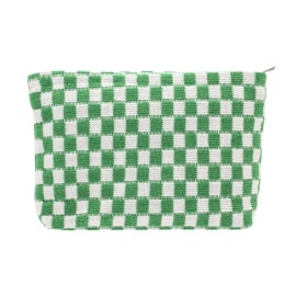 PAZIMIIK Knitted Checkered Makeup Bag Large Zipper Make Up Accessory Pouch for Purse Cosmetic Brush Bag for Travel Essential,Green