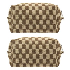 PAZIMIIK Checkered Makeup Bag for Purse Portable Zipper Make Up Pouch Small Cosmetic Case for Travel Accessories (2PCS Coffee)