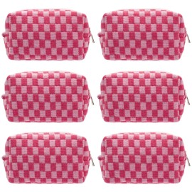 PAZIMIIK Checkered Makeup Bag for Purse Portable Zipper Make Up Pouch Small Cosmetic Case for Travel Accessories (6PCS Hotpink)